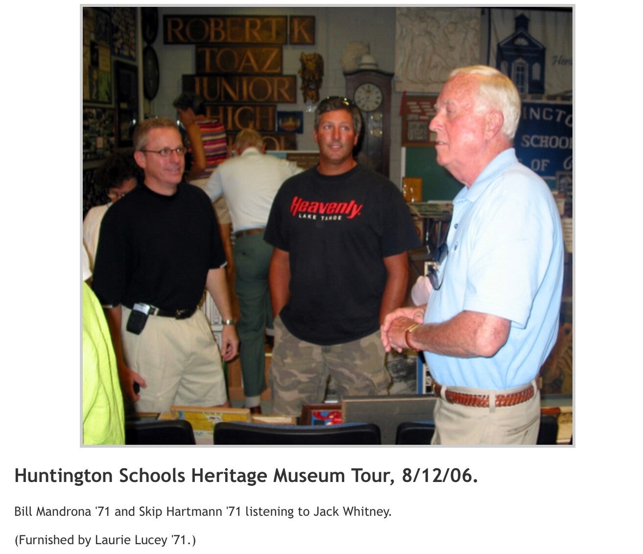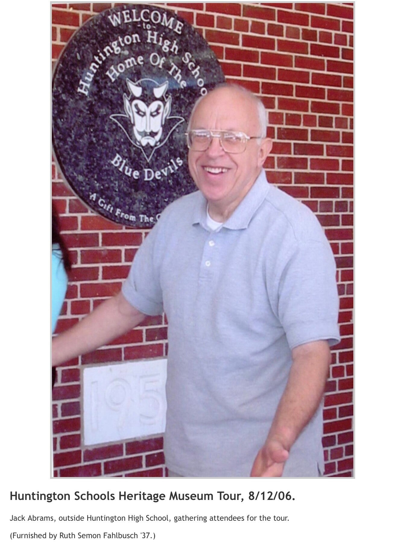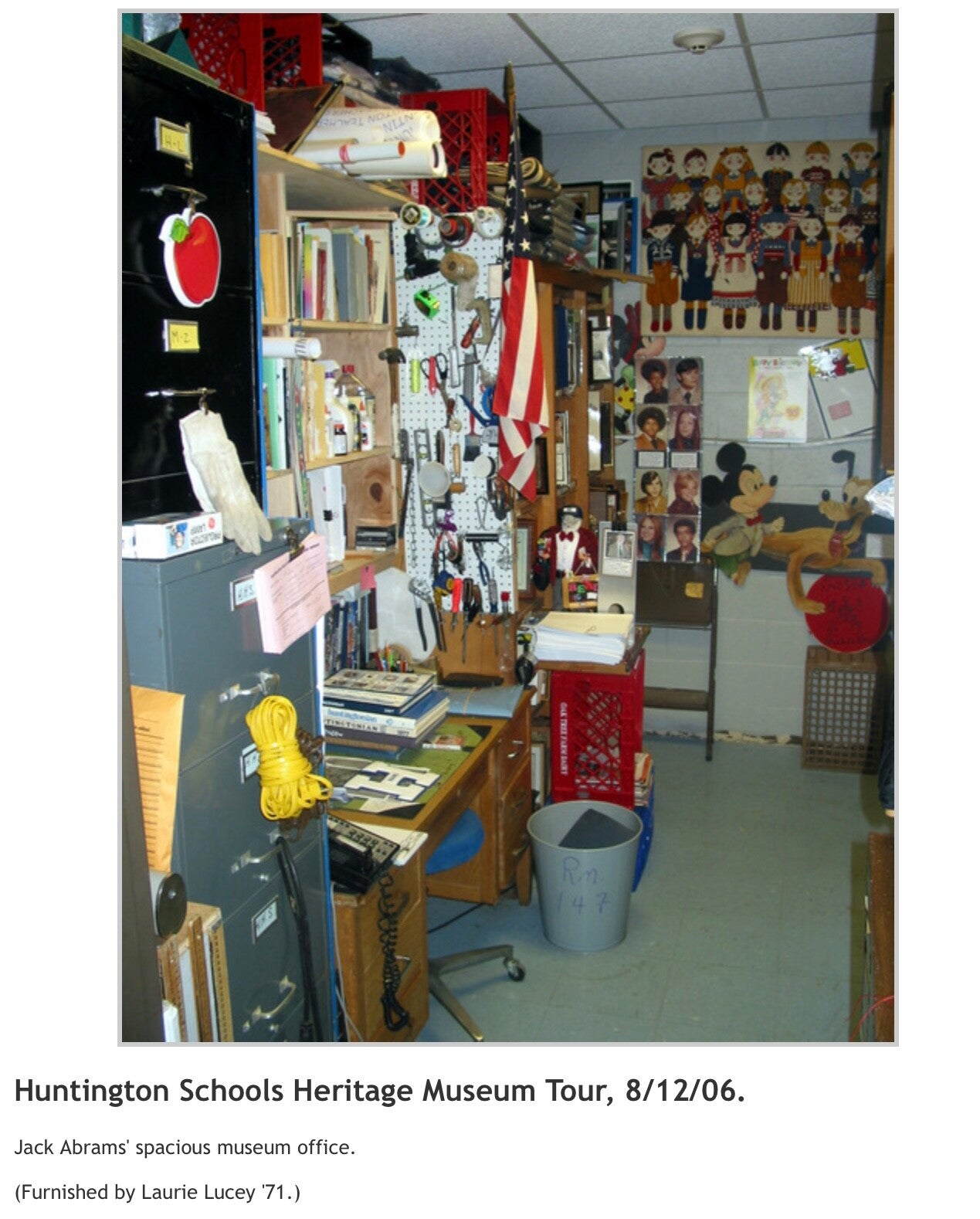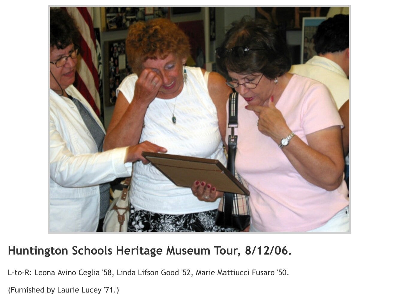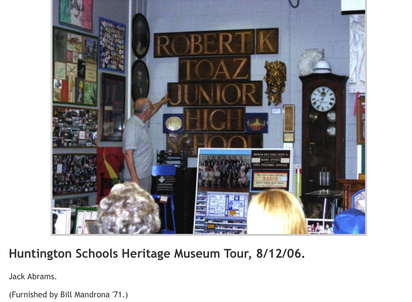 Saturday, August 12th, noon to 2:00 pm: Tour of Huntington Schools Heritage Museum, Huntington High School. Tour Guide: Jack Abrams, Curator, former teacher & principal.