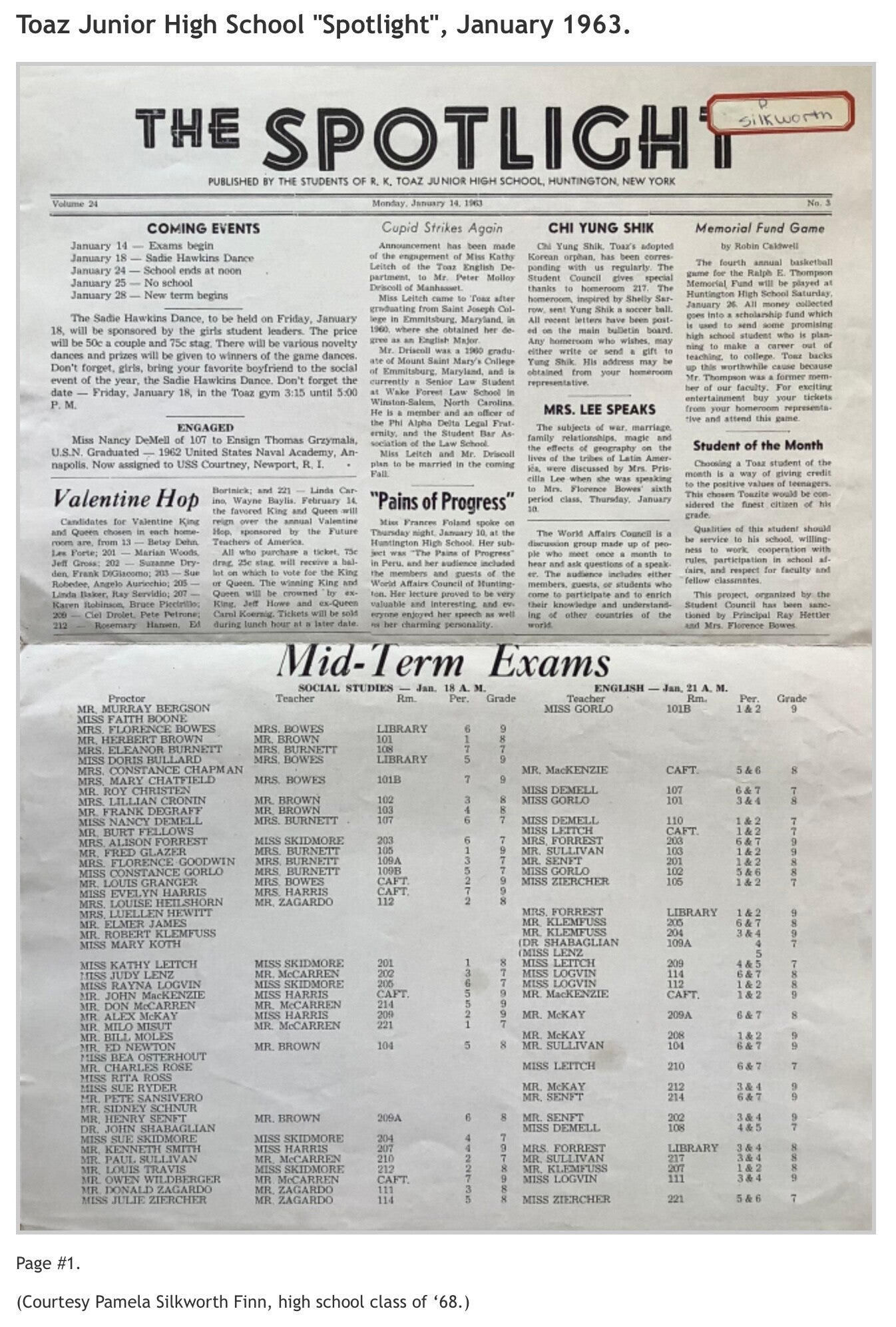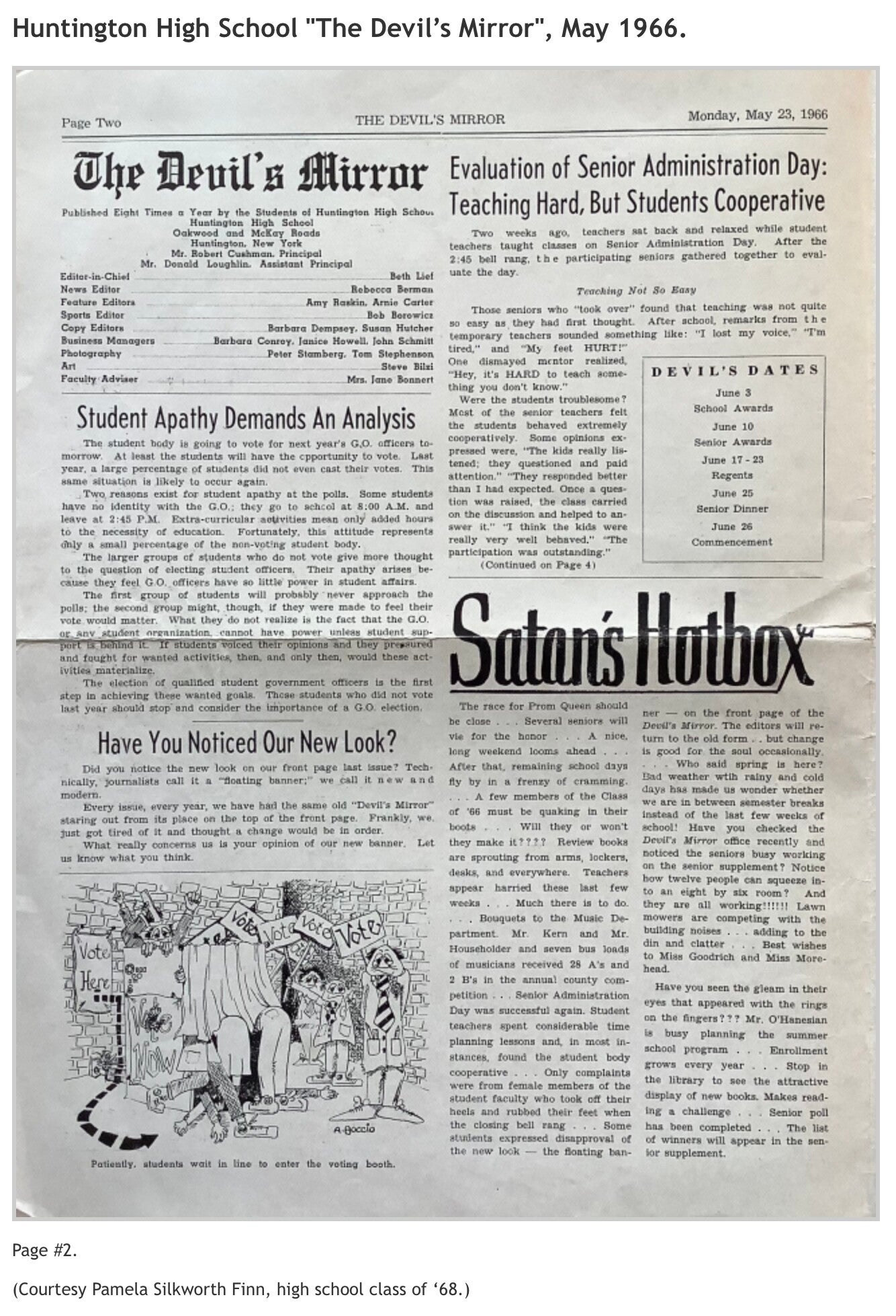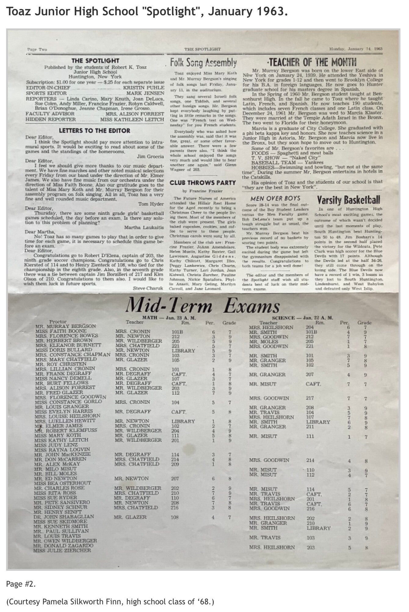 Robert K. Toaz Junior High School’s "Spotlight", November 1962 and January 1963 issues; and Huntington High School’s "The Devil's Mirror", May 1966 issue. (Courtesy of Pamela Silkworth Finn, high school class of '68.)