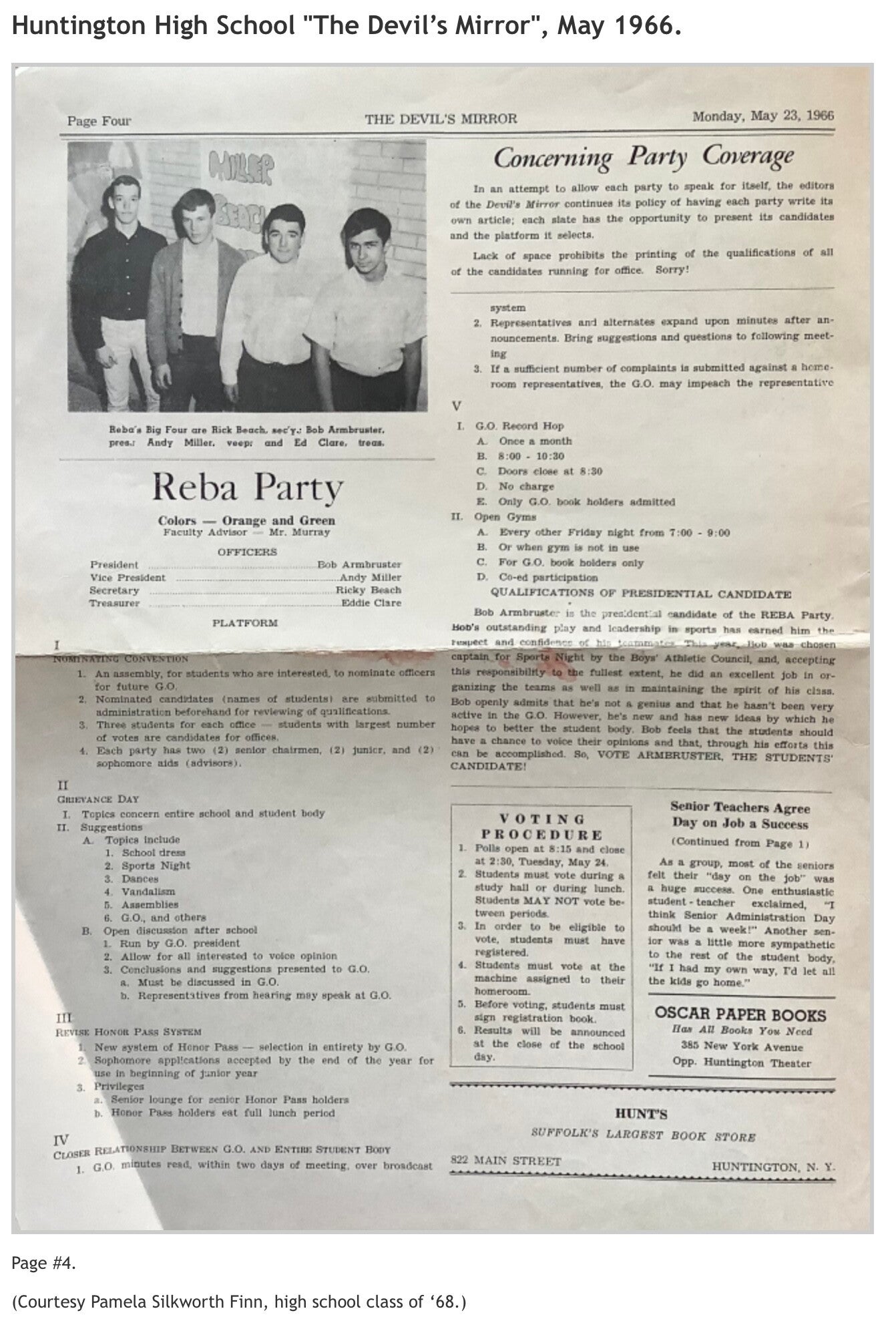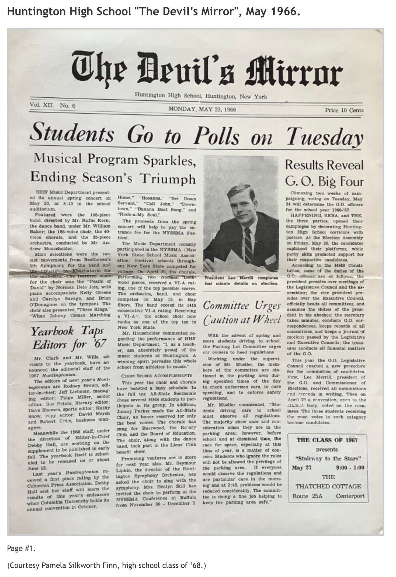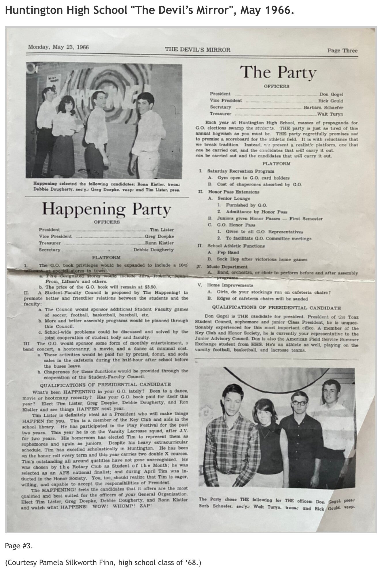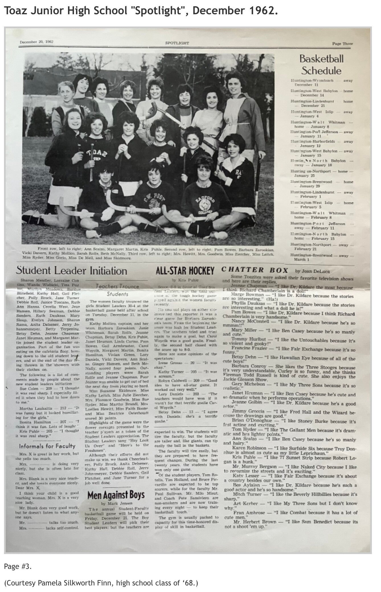 Robert K. Toaz Junior High School’s "Spotlight", November 1962 and January 1963 issues; and Huntington High School’s "The Devil's Mirror", May 1966 issue. (Courtesy of Pamela Silkworth Finn, high school class of '68.)